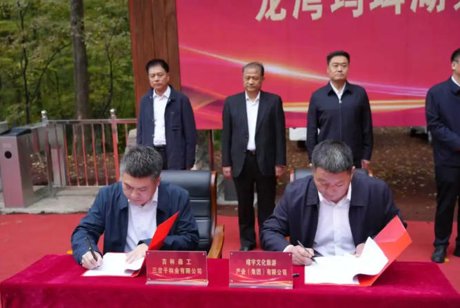 在众人见证下,靖宇文旅集团代表与三岔子林业有限公司代表现场签订合作协议,为景区后续运营搭建起协同发展平台。随着县委书记于淼、常务副县长王鼎、三岔子林业有限公司党委书记宋健、副总经理李林岩等嘉宾共同为景区揭牌,现场彩烟升腾、气球飞舞,掌声与欢呼声交织,宣告四海龙湾玛珥湖正式对外开放,标志着靖宇县火山地质旅游与生态保护融合发展迈入新阶段。