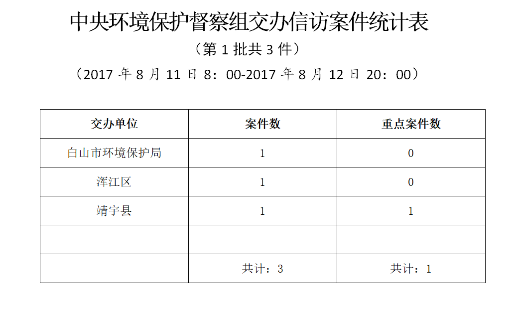 中央环境保护督察组交办白山市第1批3件举报受理信访事项