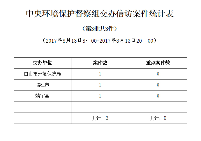 中央环境保护督察组交办白山市第3批3件举报受理信访事项